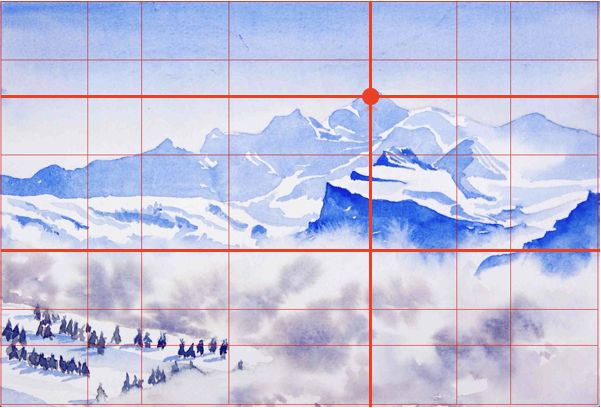 Celui-ci est situé à l'intersection de la ligne d'or primaire droite et de la ligne d'or secondaire haute.